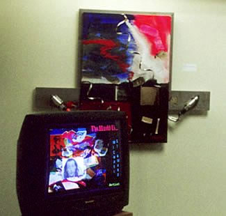 Digital work on the television and C'est la vie, mixed media, steel, with lasers